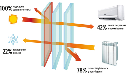 Сонячний фактор (%) - кількість сонячного тепла, яке проникає у приміщення та нагріває його.