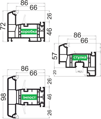 Дана профільна система призначена для заскління квартир, приватних будинків, лікарень та дитячих закладів.