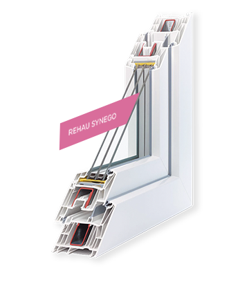 * у виробах з двосторонньою ламінацією використовується ПВХ-система REHAU Euro-Design 60